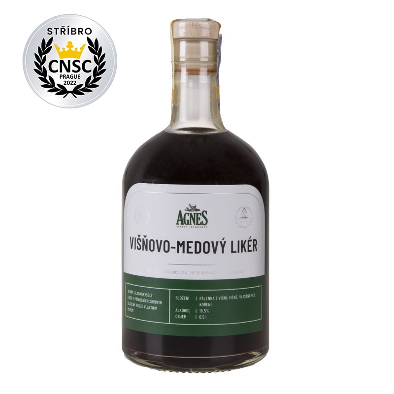 Agnes Višňovo-medový likér je výjimečný nápoj, který v sobě kombinuje sílu višňové pálenky, sladkost přírodního medu a jemně kořeněný závěr. Vzniká výhradně z přírodních surovin, bez umělých sladidel – sladkost zajišťuje vlastní med z domácích včelst ... Další informace